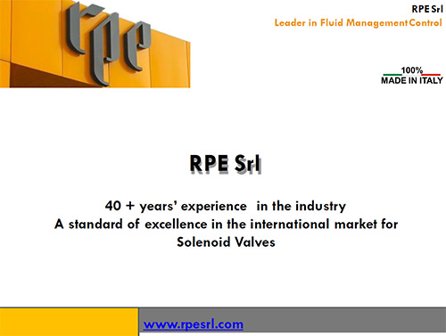 RPE currently designs and manufactures every component that goes inside of our solenoids and valves. RPE products are distributed not only in Italy but around the world, with over 40 years of outstanding growth and recognition.