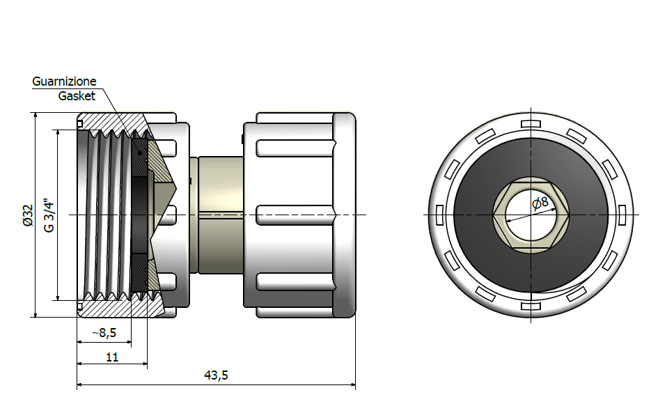 | HC2514100 | COUPLING FOR SLEEVE | 3/8'' BSPP | 3/4'' BSPP | WHITE |